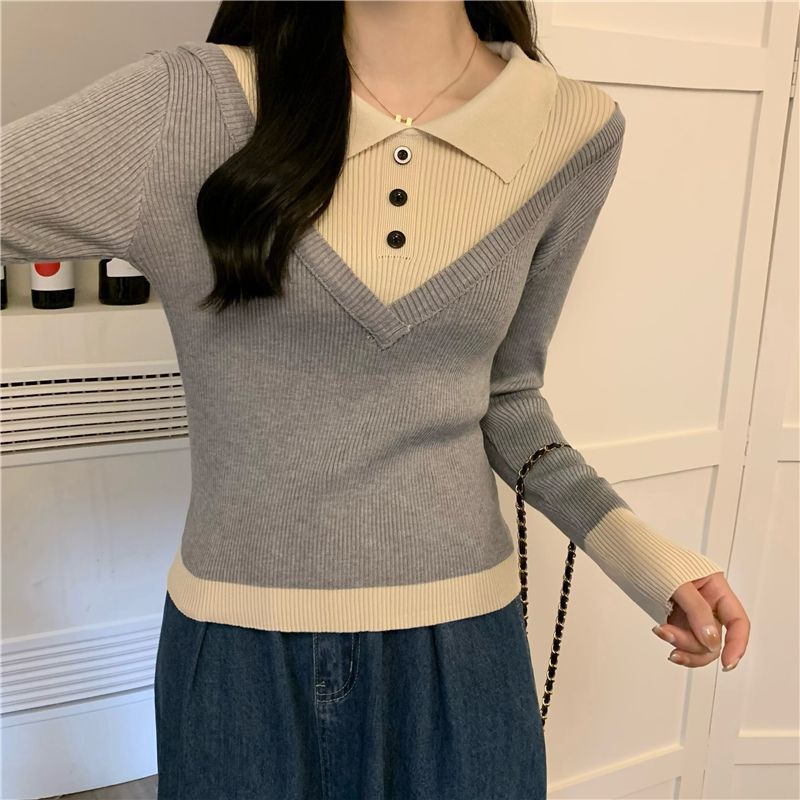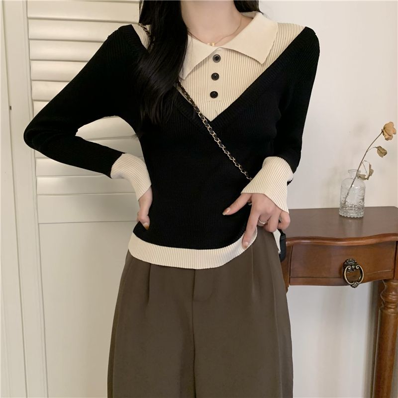 Casual Polo Sweater Top