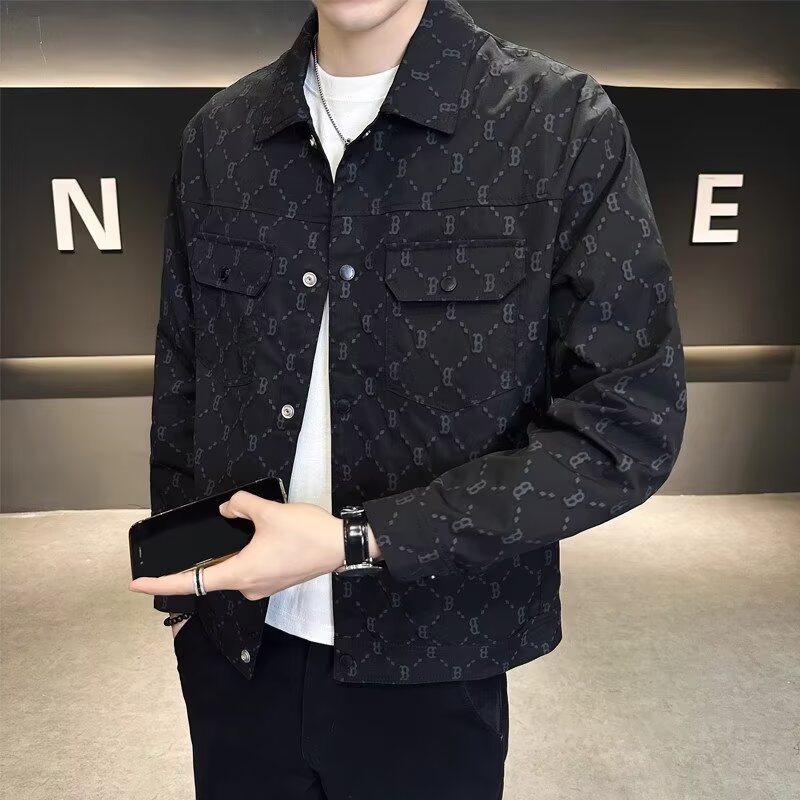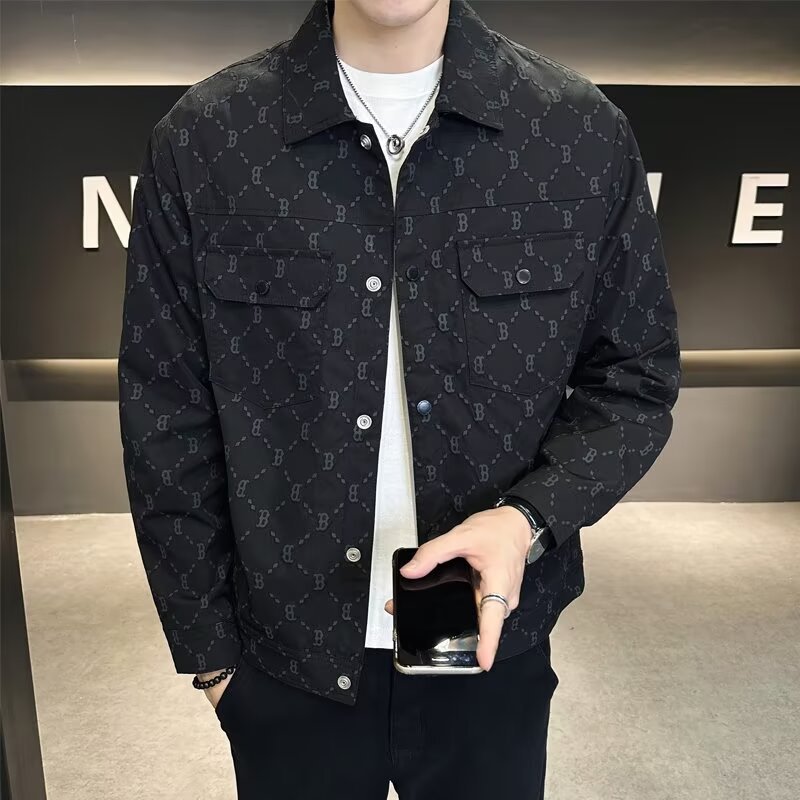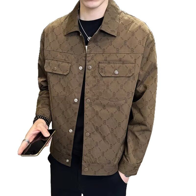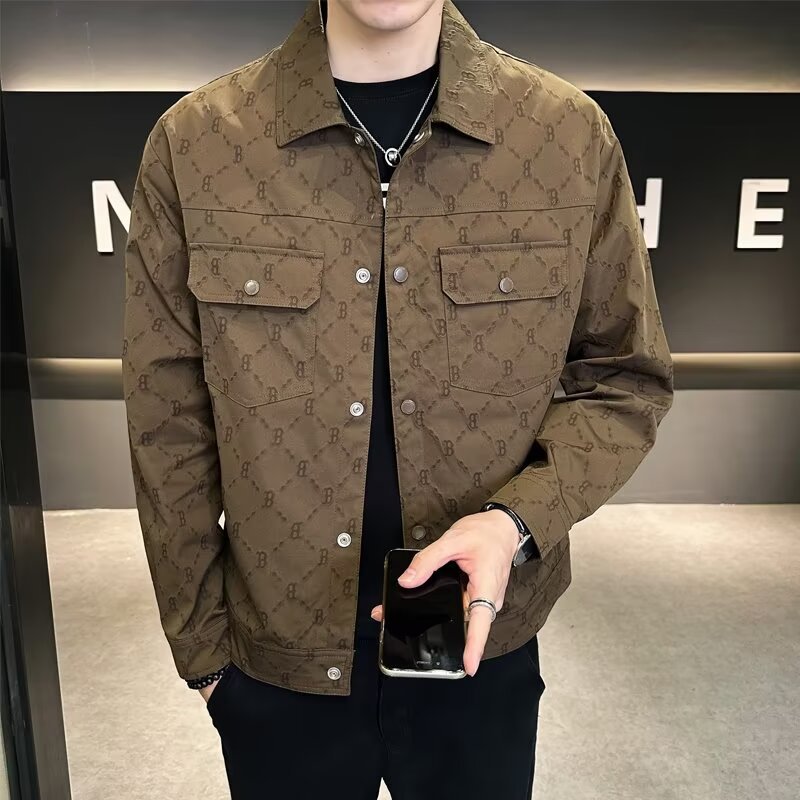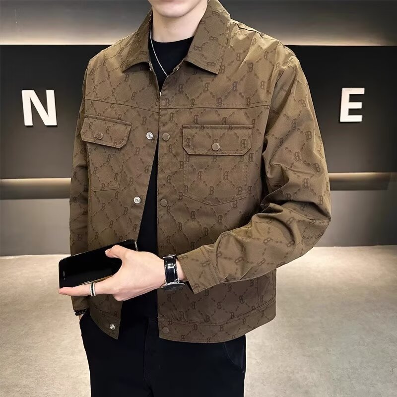Lapel Fashion Full Print Men’s Coat Fashion Brand 2025 Spring and Autumn Fashion All-match Plumpian Handsome High-end Casual Clip